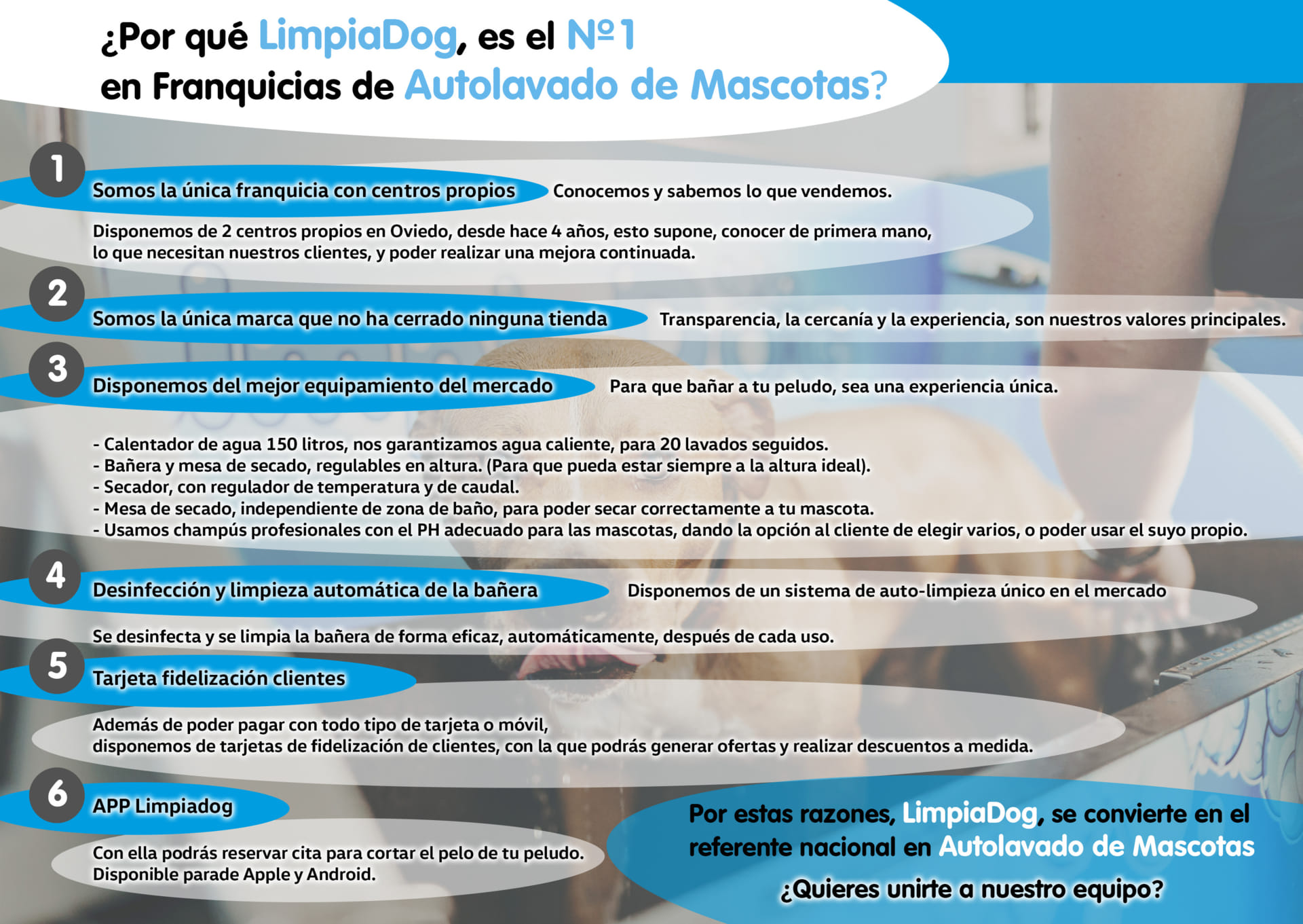 LimpiaDog pone a tu disposición un modelo de negocio (LowCost) probado incluso en tiempos de crisis y te facilita todo el apoyo que necesitas.